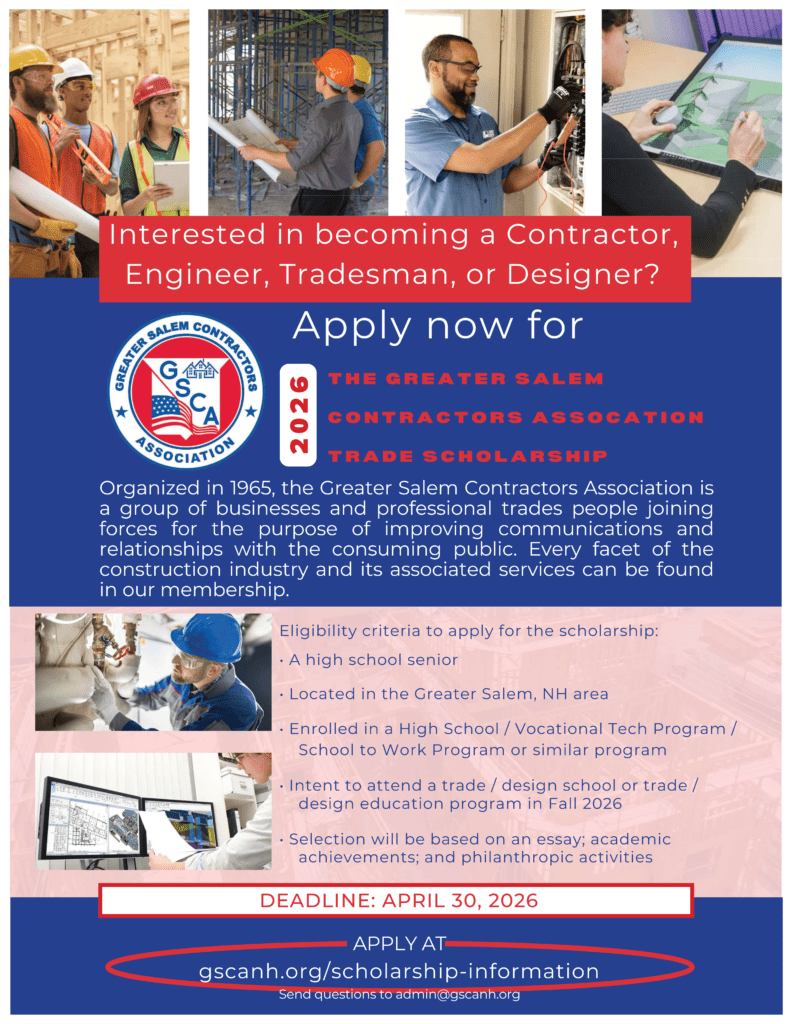 Apply now for the Greater Salem Contractors Association 2026 Trade Scholarship!